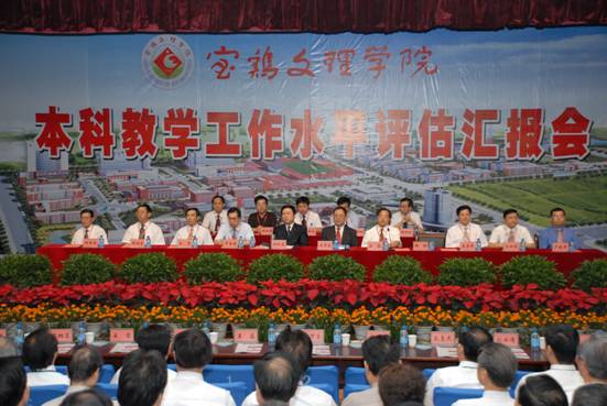 6月4日上午8时,我院新校区音乐厅掌声雷鸣,教育部对我院进行本科教学工作水平评估汇报会在这里隆重举行。专家组组长王万良教授,副组长王磊教授,专家组成员罗固源教授、秦惠民教授、王蒲教授、刘必清教授、段炳昌教授、卢晓中教授、杨雪特教授,专家组秘书朱显成博士、龚方红博士,中共宝鸡市委书记姚引良,省教育厅副厅长郝瑜,省教育厅高教处副处长张双前以及我院党政领导出席了会议。学院各部门、各单位科级以上干部,副高级职称以上教师(博士),教学督导,评建指挥部各组组长、副组长,联络员,各系学生代表等参加了汇报会。 院党委书记赵怀礼、省教育厅副厅长郝瑜、中共宝鸡市委书记姚引良先后致辞。专家组组长王万良主持汇报会,院长王志刚汇报了本科教学工作。