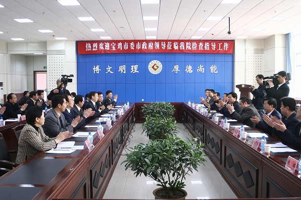 4月14日下午,宝鸡市委书记唐俊昌,市委常委、常务副市长郭社荣,市委副秘书长、办公室主任苏永兴以及市教育局、市规划局、市城建局、高新区管委会等单位领导来我院检查指导工作。