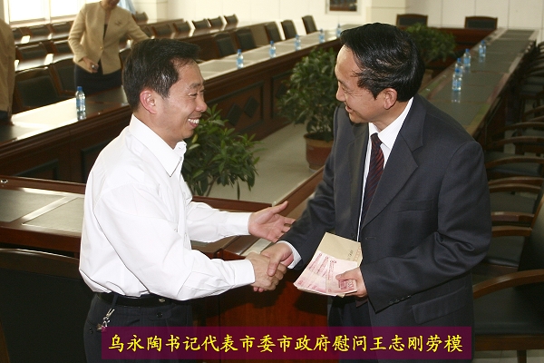 四月三十日下午,宝鸡市委常委、市政法委书记乌永陶、市人大副主任孙惜玲、副市长刘桂芳等市领导前来我院代表市委、市政府、市工会慰问市劳动模范、院长王志刚同志,并向我院师生员工表示节日的祝贺和问候。