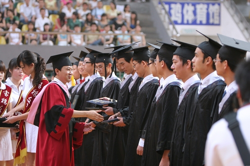 王志刚在讲话中代表学院党政领导和全体师生,对圆满完成学业、即将走上工作岗位的毕业生们表示热烈祝贺,同时对广大毕业生提出了殷切的希望:一要坚定理想信念,把个人的前途与祖国的需要紧密结合起来,在工作岗位上建功立业,做一个具有历史使命感和社会责任心的人。二要不断学习,终身学习,勤于实践,求实创新,做一个事业上不断进取的人。三要发扬文理精神,自强不息,做一个意志坚强,敢于面对挑战,敢于超越自我,成就人生的人。四要学会感恩,懂得回报,一生善待“三位母亲”—— 母亲、母校、祖国;不要忘记“三个地方”—— 出生之地、求学之地和工作之地,做一个诚实守信、知恩图报的人。他还诚挚邀请毕业生们在学院50华诞的时候回母校共襄盛举。