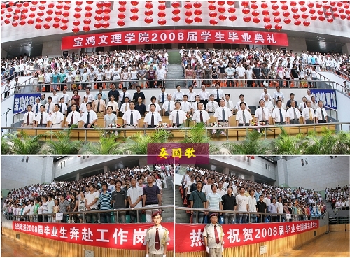 时间如梭,光阴荏苒。在这个收获的季节,我院又一批莘莘学子即将惜别母校,奔赴祖国的四面八方。7月2日上午,我院2008届学生毕业典礼在宝鸡市体育馆隆重举行。院党政领导赵怀礼、王志刚、米晓东、李全武、傅志军、王普藩、赵荣侠以及各部门、各单位负责人出席了典礼仪式。典礼由副院长傅志军主持。