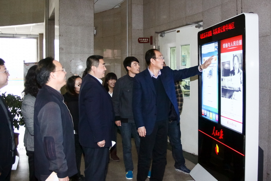 党委办公室主任王永君、党委宣传部部长彭志启、党委宣传部副部长孙宏健、院长办公室副主任张鹤陪同参观了电子阅报栏。(党委宣传部供稿)