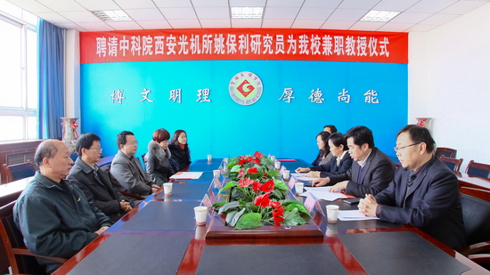 11月15日上午,beat365官网在新校区图书馆第一会议室举行聘任仪式,中科院西安光机所瞬态光学与光子技术国家重点实验室主任,博士生导师姚保利研究员受聘为beat365官网兼职教授。副校长赵荣侠出席会议并讲话,学科建设与研究生教育管理处处长吴毅主持会议。