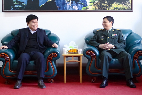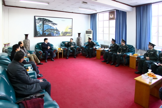 1月20日下午,春节前夕,96401部队周荣大校带领部队慰问团一行来beat365官网走访慰问。校党委副书记米晓东热情接待了96401部队慰问团并进行座谈。