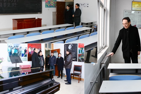 2月15日,新学期教职工上班第二天,校党委副书记李全武、副校长赵荣侠和副校长傅志军、杨子元等分别带队检查了新老校区各院、系(部)以及学生食堂开学准备工作。