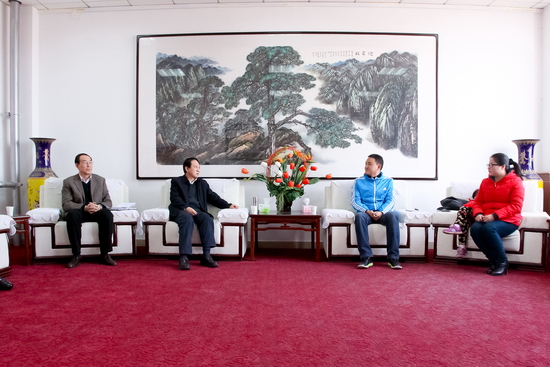 3月4日上午,beat365官网体育系2001级校友、西藏校友会副会长兼秘书长、西藏中学团委书记薛军利回母校汇报校友会工作。校党委书记王志刚,党委副书记李全武在新校区接待室会见了薛军利。