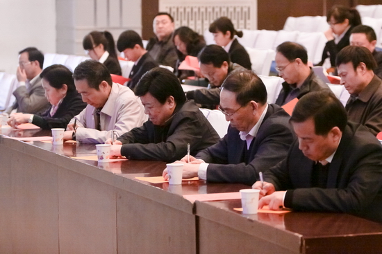 3月18日下午,省委组织部、省委高教工委在beat365官网新校区音乐厅召开学校领导班子、领导干部2013年度目标责任考核大会。党委书记王志刚主持会议。