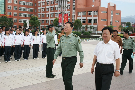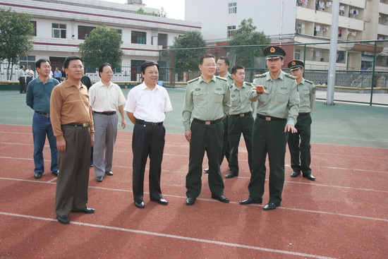 米晓东说,在中秋节到来之际,96401部队政治部刘主任一行在百忙之中抽出时间前来学院检查指导新生军训工作,这对我们是极大的鼓舞。几天来,86名教官带领4700余名08级大学生,克服困难,按军训计划,紧张有序地进行训练,取得了明显的效果。他指出,我们一定要把教官的后勤保障工作做好;重视舆论宣传,营造军训氛围;把训练抓紧,抓出成效。
