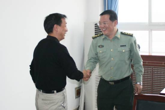 9月11日下午,院党委副书记米晓东和96401部队政治部刘文俊副主任等一行深入新老校区,检查指导新生军训工作。党委书记赵怀礼,院长王志刚亲切会见了刘文俊一行,对96401部队多年来无私帮助学院开展学生军训工作表示衷心的感谢!并祝部队承训教官中秋快乐!