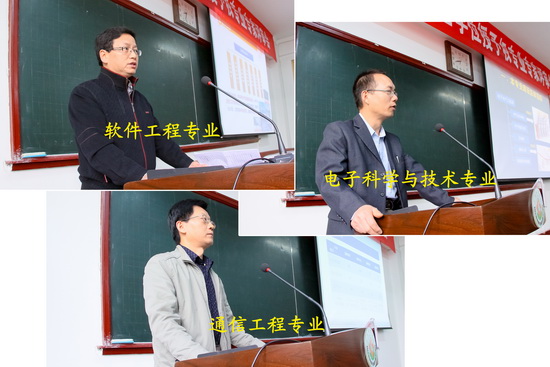 会上,电子科学与技术、通信工程和软件工程三个专业的相关负责人分别从本专业基本情况、建设思路、师资力量、课程设置、教学管理、科学研究等方面进行了自评汇报。