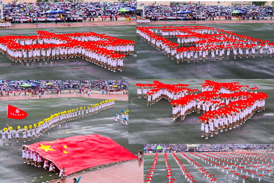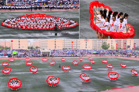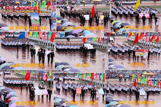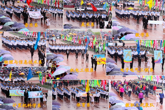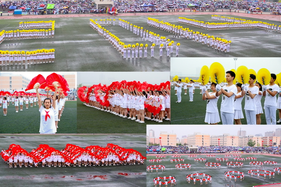 在开幕式上,由外国语言文学系、数学系和地理与环境学院大学生表演的大型团体操《中国梦、五彩梦》、《青春文理与爱腾飞》为运动会增添了靓丽的色彩。