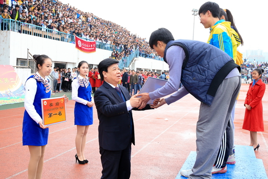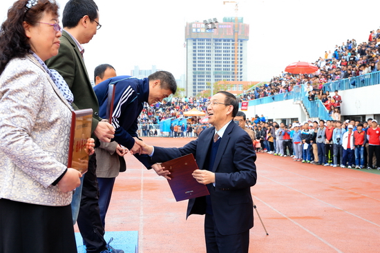 4月21日下午,运动会闭幕式在新校区体育场举行。闭幕式由校党委副书记米晓东主持,副校长傅志军致闭幕词。