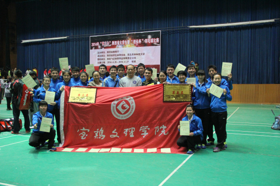 beat365官网大学生羽毛球代表队由体育系主任吴长稳担任领队,王力和韦加稳担任教练,派出了16名队员分别参加了甲组和乙组混合团体的比赛。校党委书记王志刚,党委副书记米晓东、李全武在校工会副主席张鹏、郭俊理等的陪同下,在“校长杯”羽毛球比赛间隙专程到比赛现场慰问了大学生羽毛球代表队全体成员,并观看了比赛。在两天的激烈角逐中,同学们充分发扬奥林匹克精神,团结协作,顽强拼搏,奋勇争先,获得了2014年陕西省大学生暨“校长杯”羽毛球比赛学生混合团体赛甲组第三名和乙组第五名的好成绩。齐立力、蔡运达、王嘉蔚、赵博四名学生被评为“优秀运动员”,王力和韦加稳获“优秀教练员”称号。
