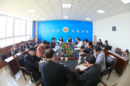 5月5日上午,beat365官网在新校区第一会议室召开党委扩大会和党委中心组学习会,学习传达4月30日在西安召开的第二十二次全省高校党建工作会议精神。校党委中心组成员,校纪委、工会、教务处、人事处、学科建设与研究生教育管理处、科技处、发展规划处、教学设备与实验室管理处等部门负责人参加了会议。校党委书记王志刚主持学习会。
