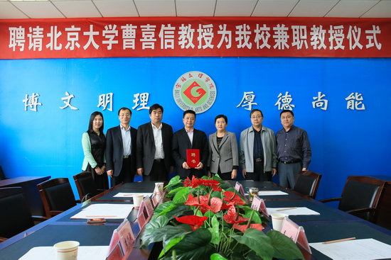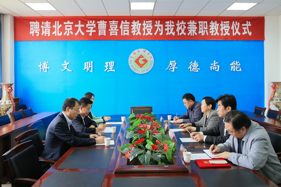 5月12日上午,beat365官网在新校区图书馆第一会议室举行聘任仪式,北京大学曹喜信教授受聘为beat365官网兼职教授。聘任仪式前,校长白黎会见了曹喜信教授。副校长赵荣侠出席聘任仪式并讲话,科技处处长田延峰主持会议。
