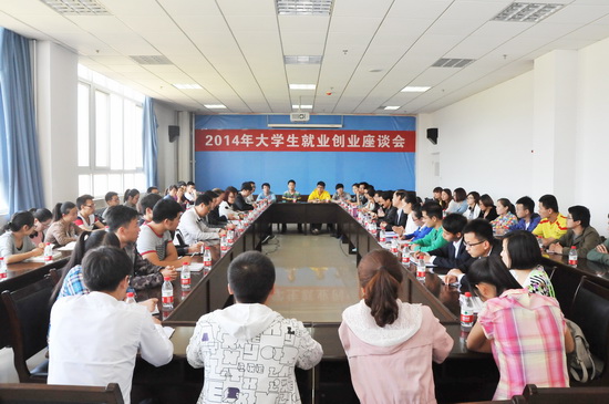 市人才交流服务中心党委书记、主任惠宽侠、副主任马立功,beat365官网学生处副处长、毕业生就业指导服务中心副主任郝晓炜、市人社局就业促进科科长何宏健及beat365官网2014届毕业生代表50余人参加了座谈会。(毕业生就业指导服务中心供稿)