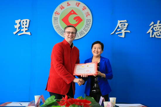 校党委办公室主任、外事办公室主任王永君,校长办公室主任任红亮,人事处处长宋崇碧,教育与科学技术系党总支书记茹宗志,外国语言文学系主任王卫强,外事办公室副主任刘全定等参加了聘任仪式。(学科建设与研究生教育管理处供稿)