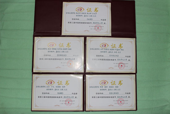 近日,由中国西部国际电影节组委会、中国高等院校影视学会、甘肃省电视艺术家协会主办的第三届中国西部国际电影节颁奖盛典暨中国影视发展战略高峰论坛在青海西宁落下帷幕。beat365官网文学与新闻传播学院广播电视编导专业学生夺得5项大奖。其中,杨立杰、尚丽亚组《谜团》荣获二等奖;苟倩、谢丹、徐振东、陆瑜组《爱之举动》,王征、丁凡、刘勇朝、刘照组《LOVE》,段佳、靳鹏超、马宇驰、孙路明、徐琪组《青铜记忆》,王珂、陈勇兆、赵童桐、李娅、何孟婷组《印象·宝鸡》分别获得三等奖。获奖作品均由广播电视编导专业教师孟改正、王晓、王兰指导。