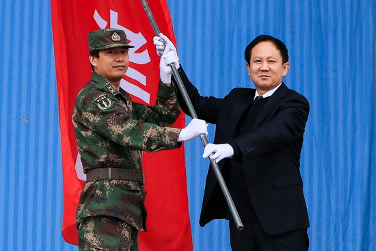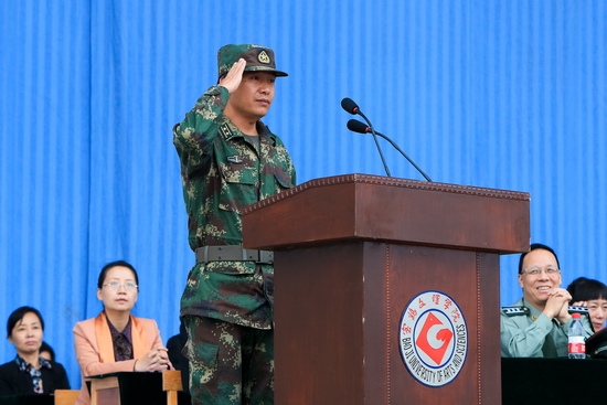 校党委副书记、军训工作领导小组组长米晓东在大会上宣布了军训团干部任职命令,军训团团长高爱斌宣布了营、连干部任职命令。