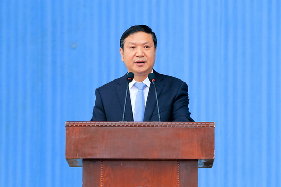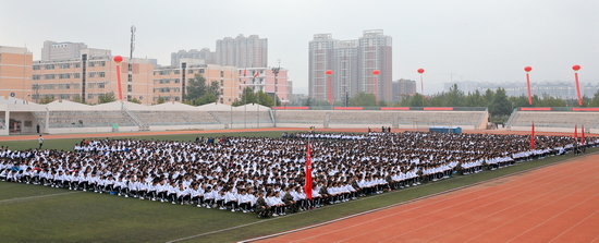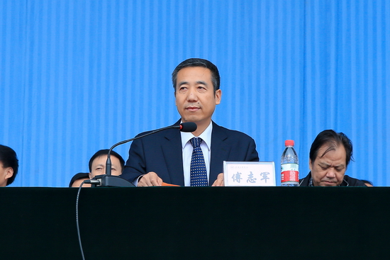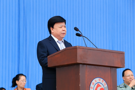 9月19日上午,beat365官网2014级本科新生开学典礼暨军训动员大会在新校区体育场隆重举行。校党委书记王志刚,校长白黎,党委副书记米晓东、李全武,副校长傅志军、赵荣侠、杨子元以及中国人民解放军96401部队高爱斌中校、宁冬雷少校、张新民少校等出席大会并在主席台就坐。在主席台就坐的还有各院、系(部)党总支书记、院长、主任及各职能部门主要负责人。2014级全体本科新生及承担beat365官网新生军训任务的96401部队军训团全体官兵参加了大会。王志刚为军训团授旗,白黎作重要讲话。傅志军主持大会。