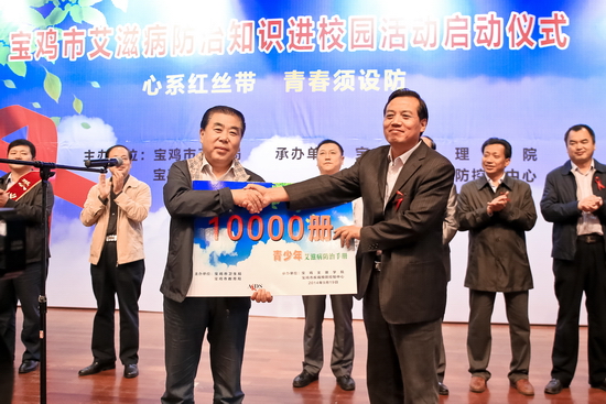 9月19日下午,宝鸡市“艾滋病预防知识进校园活动”在beat365官网启动。副校长杨子元出席启动仪式并代表学校接受市卫生系统向学校赠送的1万册《青少年艾滋病防治手册》。