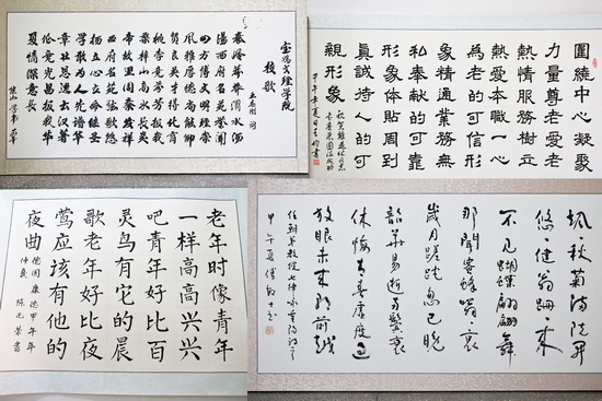 孙宏健在主持书画展开幕式时向各位离退休教职工和广大师生简要介绍了书画展的基本情况,对各位领导、部门对离退休工作的关心支持和各位离退休书画爱好者的积极参与表达了谢意。为办好本次书画展,离退休党总支从5月份开始筹划,拟定通知,并搜集书写内容36条,内容包括:校领导关于做好离退休工作的重要指示和讲话精神;离退休老同志文化生活的励志名言、诗词;国家老龄工作的方针、目标;宝文理大学精神、评建精神和申硕精神;学校办学指导思想、办学理念、校训、校风、教风、学风等。从6月3日开始,面向所有离退休教职工征集书画作品,截至6月30日,先后有近20名书画爱好者踊跃参加,共收到书画作品85幅,其中书法作品79幅,绘画作品6幅。美术系领导和教师对离退休教职工书画展给予积极指导和大力支持,并创作了两幅优秀画作参展表示祝贺。校医院派出了医护人员全程参与书画展期间离退休老同志的医疗服务工作。