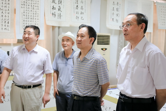 校党委办公室主任王永君,校长办公室主任任红亮,组织部部长郑存库,宣传部部长彭志启,校工会副主席张鹏,离退处处长刘景世等陪同校领导参观了书画展。截至目前,学校部分职能部门负责人、院系领导、离退休教职工和广大师生共200余人参观了离退休教职工书画展。(离退休党总支供稿)