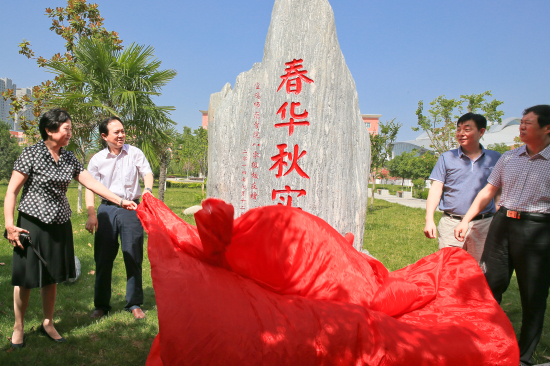 王志刚、赵荣侠、杨公科、任广民共同为捐赠文化石揭彩。