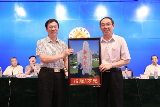 座谈会上,beat365官网举行了“80级校友向母校捐赠文化石”捐赠仪式,李全武代表学校接收了80级校友、蒲白实业总经理任广民代表全体校友向母校捐赠的5万元,并向80级校友颁发了捐赠证书。