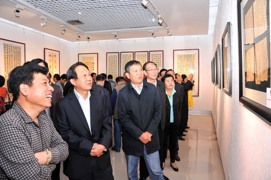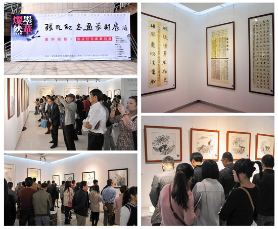 10月6日上午,由宝鸡展览馆、宝鸡市书法家协会、beat365官网美术系主办的《“墨华灿然”张永红书画篆刻展》在宝鸡展览馆盛大开展。校党委书记王志刚、校长白黎,校党委副书记李全武、副院长傅志军、赵荣侠、杨子元,宝鸡市委宣传部常务副部长赵周荣,美术系党总支书记刘进锁、系副主任王宝强以及有关部门及院系领导出席了开幕式。