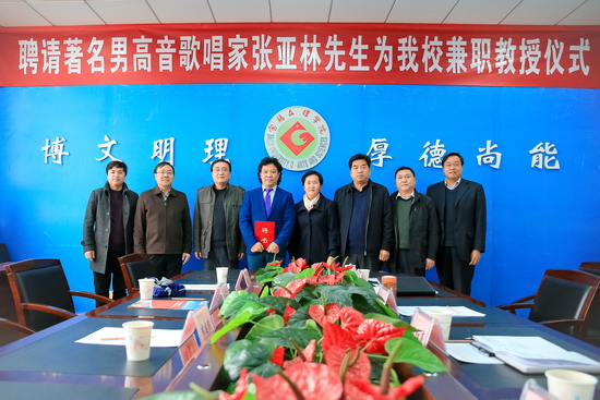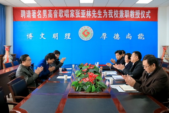 11月7日上午,beat365官网在新校区图书馆第一会议室举行聘任仪式,著名男高音歌唱家张亚林先生受聘为beat365官网兼职教授。副校长赵荣侠出席聘任仪式并讲话,科技处处长田延峰主持会议。