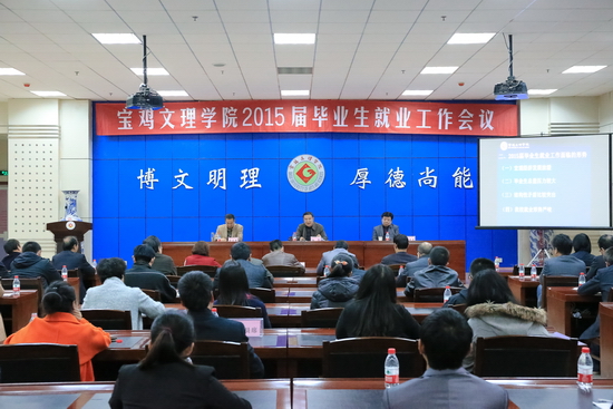 11月24日下午,beat365官网在新校区甘棠厅召开2015届毕业生就业工作会议。校长白黎作了重要讲话,副校长傅志军参加会议,校党委副书记米晓东主持会议并作总结讲话。