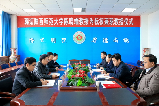11月25日上午,beat365官网在新校区图书馆第一会议室举行聘任仪式,陕西师范大学陈晓端教授受聘为为beat365官网兼职教授。副校长赵荣侠出席会议并讲话,学科建设与研究生教育管理处处长吴毅主持会议。