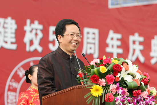 院长王志刚在建校50周年庆典大会上发表了热情洋溢的致辞,他代表学院党委行政和18000多名师生员工,向出席庆典的各位领导、嘉宾和校友们表示热烈的欢迎和衷心的感谢。他说,宝文理50年历史是历代文理人艰苦创业,自强不息,开拓进取的历史;是办学条件不断改善、校园建设快速发展的历史;是师资队伍结构不断优化、质量水平不断提高的历史;是学科实力不断增强,科研水平不断提升的历史;是管理不断规范,兴校办学能力不断提高的历史;是教育教学水平和人才培养质量不断提高的历史;是办学特色不断彰显,社会知名度不断扩大的历史;是各级政府和领导、兄弟院校、社会各界、广大校友热情关心,鼎力支持,携手共进的历史。作为一所地方高校,我院能取得今天的成绩,得益于各级政府、各位领导的亲切关怀和大力支持,得益于海内外兄弟院校和友好企事业单位的真诚合作,得益于广大校友的无私奉献和全校师生员工的不懈努力。