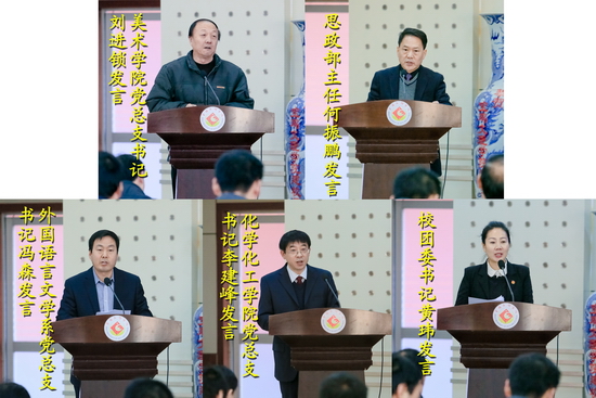 会上,思政部主任何振鹏、团委书记黄玮、外国语言文学系党总支书记冯森、美术学院党总支书记刘进锁、化学化工学院党总支书记李建峰分别作了交流发言。与会人员围绕会议主题,进行了认真讨论,高度评价了近十年来学校大学生思想政治教育工作所取得的成绩,并就beat365官网进一步加强和改进大学生思想政治教育工作,构建和完善大学生思想政治教育工作长效机制,服务学校发展提出了建设性的意见和建议。
