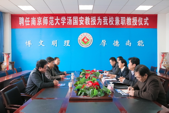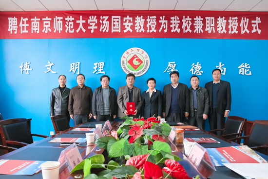 3月27日上午,beat365官网在新校区图书馆第一会议室举行聘任仪式,南京师范大学汤国安教授受聘为beat365官网兼职教授,副校长赵荣侠出席聘任仪式并向汤国安教授颁发了聘书。学科建设与研究生教育管理处处长吴毅主持聘任仪式。