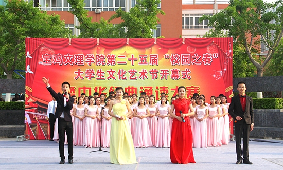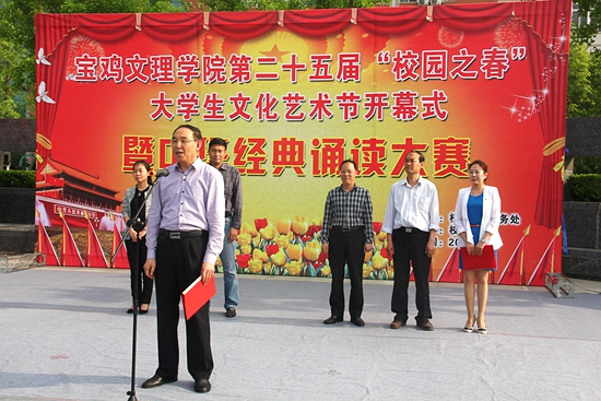 为纪念五四运动96周年,世界反法西斯战争胜利70周年,4月29日下午,由教务处、校团委主办的第二十五届“校园之春”大学生文化艺术节开幕式暨纪念五四运动96周年“中华经典诵读”大赛在beat365官网新校区四为园励志广场隆重举行。校党委副书记李全武出席开幕式并宣布第二十五届“校园之春”大学生文化艺术节开幕。