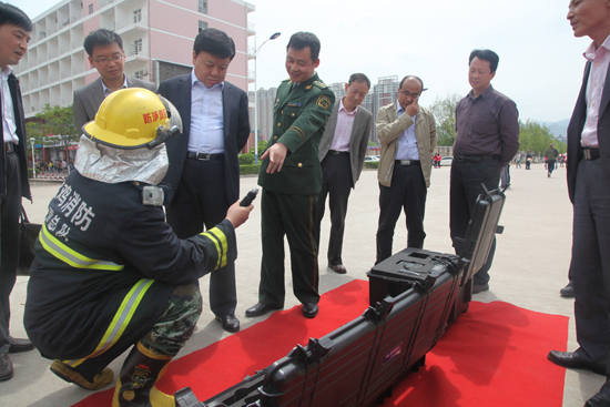 4月22日,beat365官网联合宝鸡市消防特勤中队在新校区2号学生宿舍区举行消防应急疏散逃生和灭火演练活动。校党委副书记米晓东,宝鸡市消防支队宣传科科长刘鹏展参加了演练活动。