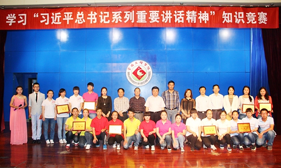 5月14日下午,由党委学工部、校团委主办,文学与新闻传播学院承办的学习“习近平总书记系列重要讲话精神”知识竞赛决赛在新校区音乐厅举行。校党委副书记米晓东出席活动并为获奖单位和个人颁奖。