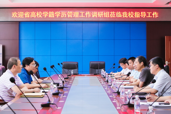 教务处处长王富平就beat365官网学籍学历管理的主要工作,开展情况包括机构设置、制度建设、队伍现状、硬件保障、政策宣传、服务学生,学籍学历管理工作面临的困难和问题,今后工作的努力方向以及对省厅学籍学历管理工作的建议等五个方面进行了汇报。继续教育学院院长王陆军也对beat365官网成人教育学籍学历管理工作的开展情况进行了汇报。