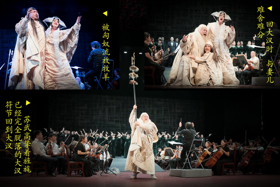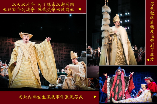 原创歌剧演唱会版《大汉苏武》用艺术的形式生动地再现了西汉年间苏武持节出使匈奴被扣留后,面对匈奴威逼利诱,历经艰辛,留居匈奴十九年持节不屈,艺术地再现了苏武忠贞不渝的爱国精神,崇高的民族气节和情操。整台歌剧阵容强大,气势恢弘,音乐磅礴,使人印象深刻,赢得了观众阵阵掌声。