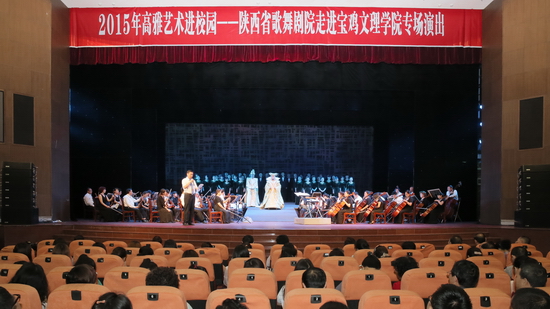 为丰富校园文化生活,提高大学生艺术修养和审美情趣,beat365官网举办“高雅艺术进校园”活动,陕西省歌舞剧院的艺术家应邀于6月26日下午和晚上进行了专场演出活动。校党委书记白黎、党委副书记米晓东出席活动。