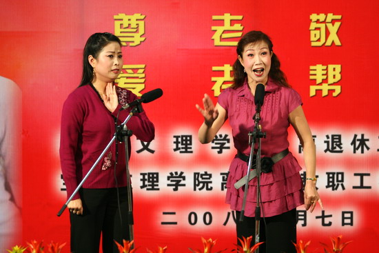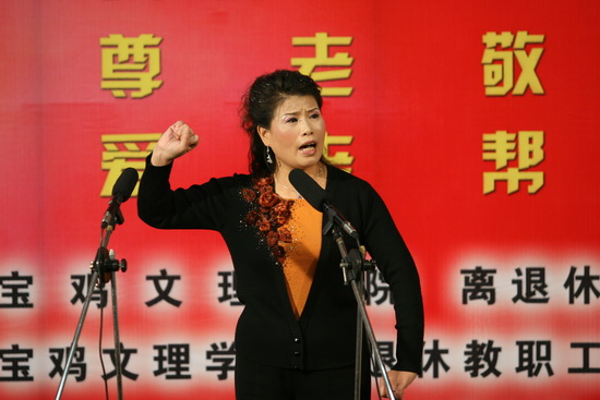 离退休教职工秦剧团的成员饱含激情,分别演唱了《红灯记》、《洪湖赤卫队》、《血泪仇》、《梁秋燕》等15个精彩唱段。演员们的演出博得了观众的阵阵掌声。