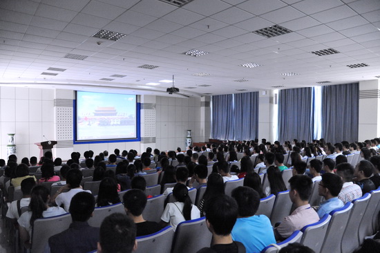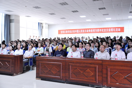 9月3日上午,beat365官网师生在新校区木铎厅集体观看中共中央、全国人大常委会、国务院、全国政协、中央军委举行的纪念中国人民抗日战争暨世界反法西斯战争胜利70周年大会实况转播。校党委副书记米晓东与相关职能部门领导、部分院系辅导员和在校学生共计300余人观看了大会实况。