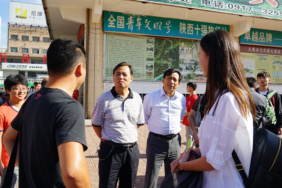 12日上午,校党委书记白黎,校长司晓宏,党委副书记米晓东,副校长傅志军、杨子元等先后来到老校区和新校区迎新现场检查指导工作。他们详细询问各接待点迎新工作进展状况以及安全保卫、食宿安排、身体检查、校外接待等工作安排落实情况,听取了部分职能部门的简单工作汇报,嘱咐各单位要落实好工作中应特别注意的关键问题和环节,对今年迎新的总体工作表示肯定。检查过程中,校领导与部分新生和家长驻足交谈,询问了他们对学校及迎新工作的整体感觉和意见,并鼓励新生要学会自立、好好学习,不辜负家长期望。