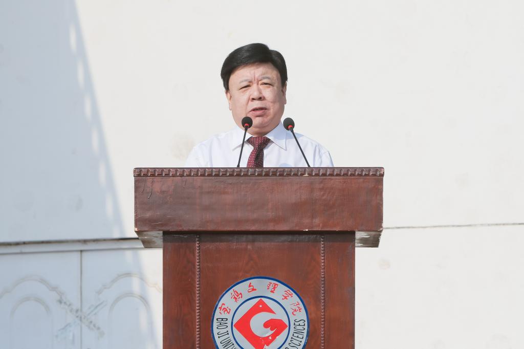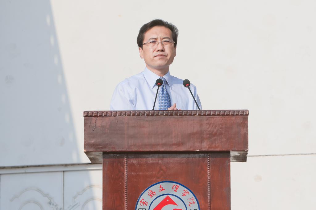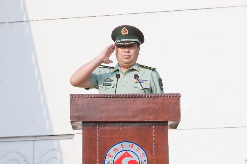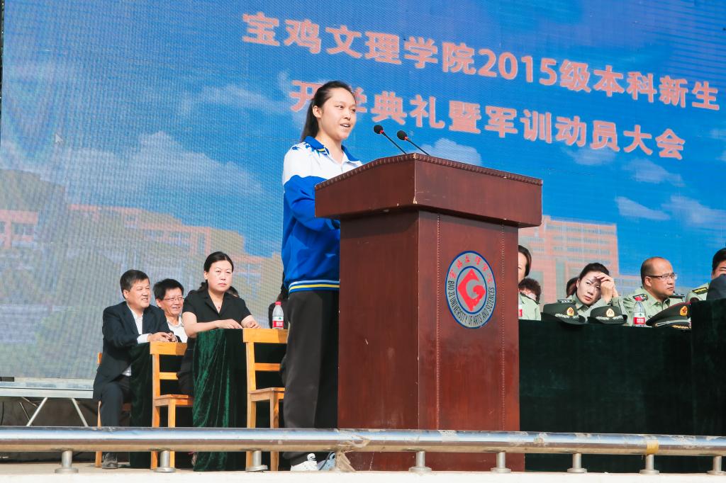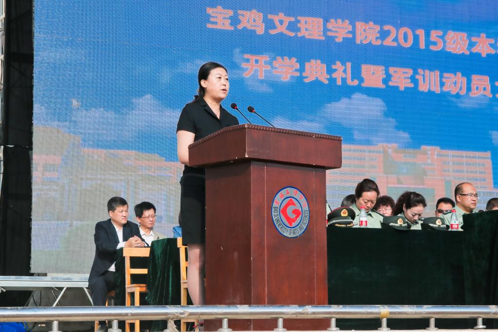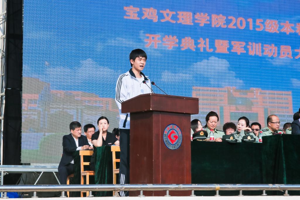 司晓宏在讲话中代表学校党委和行政以及全校师生员工向来自全国31个省、市、自治区的4983名新同学表示热烈的欢迎和诚挚的祝贺!向承担beat365官网大学生军训任务的96401部队官兵们表示崇高的敬意和衷心的感谢!他向新生介绍了宝鸡的历史文化底蕴和现代化建设过程中取得的殊荣;介绍了学校的历史、专业、师资、就业等基本情况以及学校近年来抢抓机遇、走内涵式发展道路所取得的成绩;号召全校上下同心同德、锐意进取,朝着建设教学研究型的高水平宝鸡大学的宏伟目标奋进。他希望2015级新生勤奋学习、刻苦攻读;修德砥品、健全人格;强身健体、全面发展;志存高远,勇于担当。最后,他勉励同学们要正确认识军训的意义与价值,以饱满的姿态认真投入到军训活动之中,发扬不怕苦、不怕累的精神,磨练意志,砥砺品格,努力习获解放军的优良作风,圆满完成大学生活的第一课。