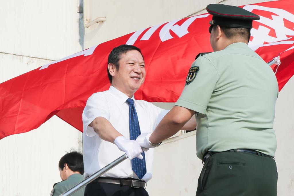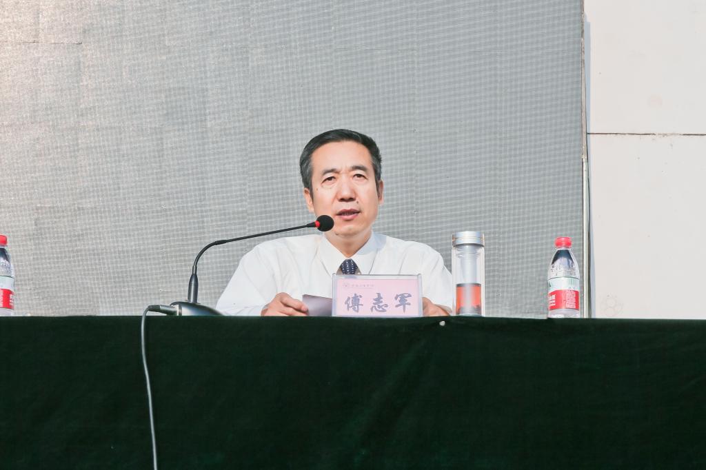 9月14日上午,beat365官网2015级本科新生开学典礼暨军训动员大会在新校区体育场隆重举行。校党政领导白黎、司晓宏、米晓东、李全武、傅志军、赵荣侠,中国人民解放军96401部队王小兵中校等出席大会并在主席台就坐。校党委书记白黎为军训团授旗,校长司晓宏作重要讲话。副校长傅志军主持大会。
