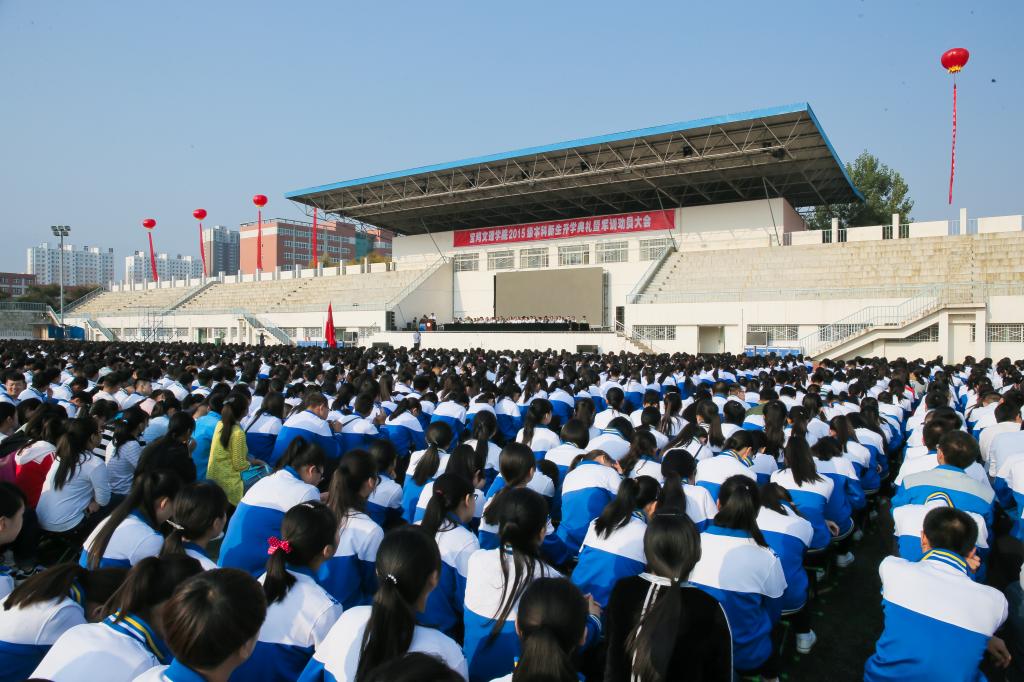 各院、系党总支书记、院长、主任及各职能部门主要负责人,2015级全体本科新生及承担beat365官网新生军训任务的96401部队军训团全体官兵参加了大会。
