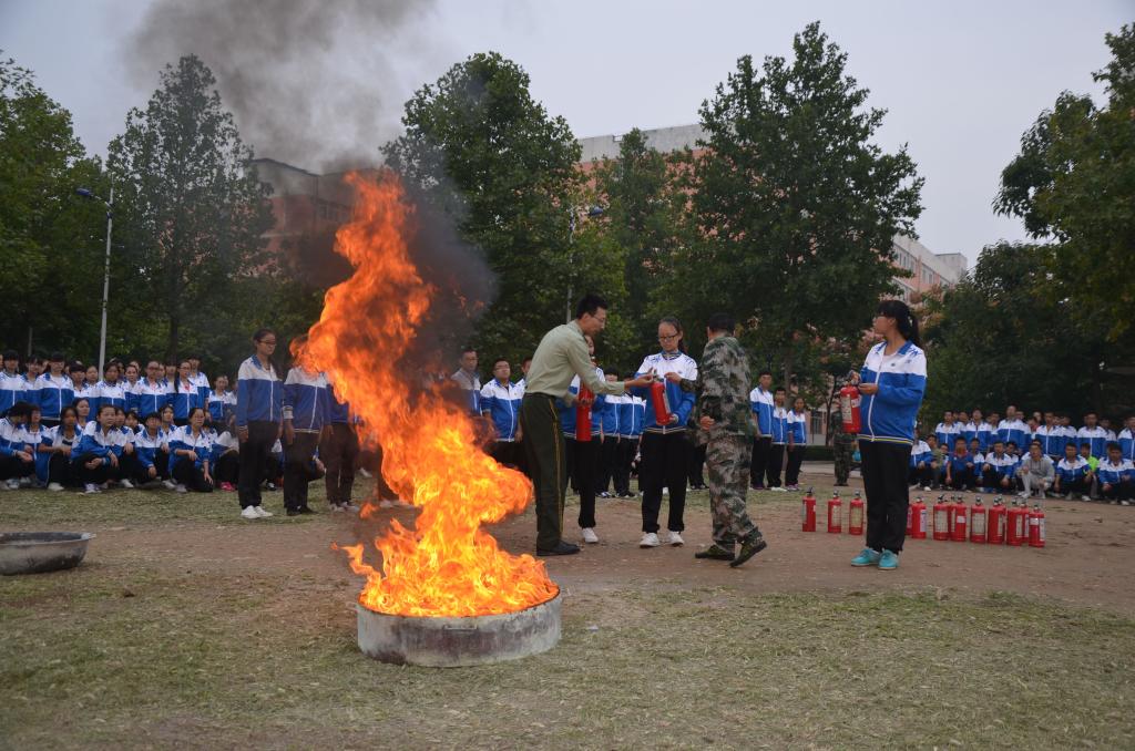 消防演练前,宝鸡市消防支队王博上尉向在场学生详细讲解了防火灭火的有关知识和消防器材的使用方法。大家在观摩消防队员实战灭火的训练科目后,150多名新生在消防战士的指导下手提灭火器进行了灭火实践操作。