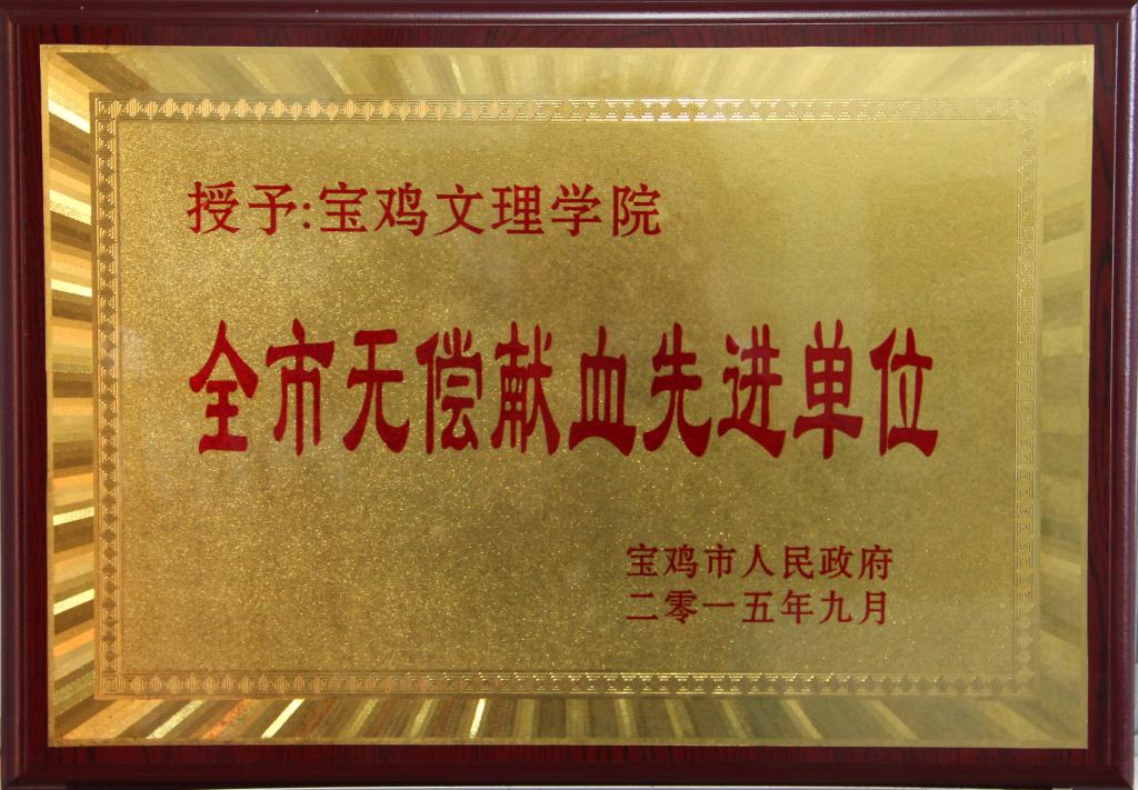 近日,宝鸡市政府召开纪念《献血法》颁布17周年暨无偿献血表彰大会,beat365官网荣获“宝鸡市无偿献血先进单位”称号。(校长办公室 校团委 文、图/张磊)